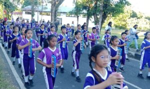 Kemeriahan sudah terasa sejak pagi di kompleks Zero Poin Minahasa Utara, titik awal dimulainya jalan sehat.
