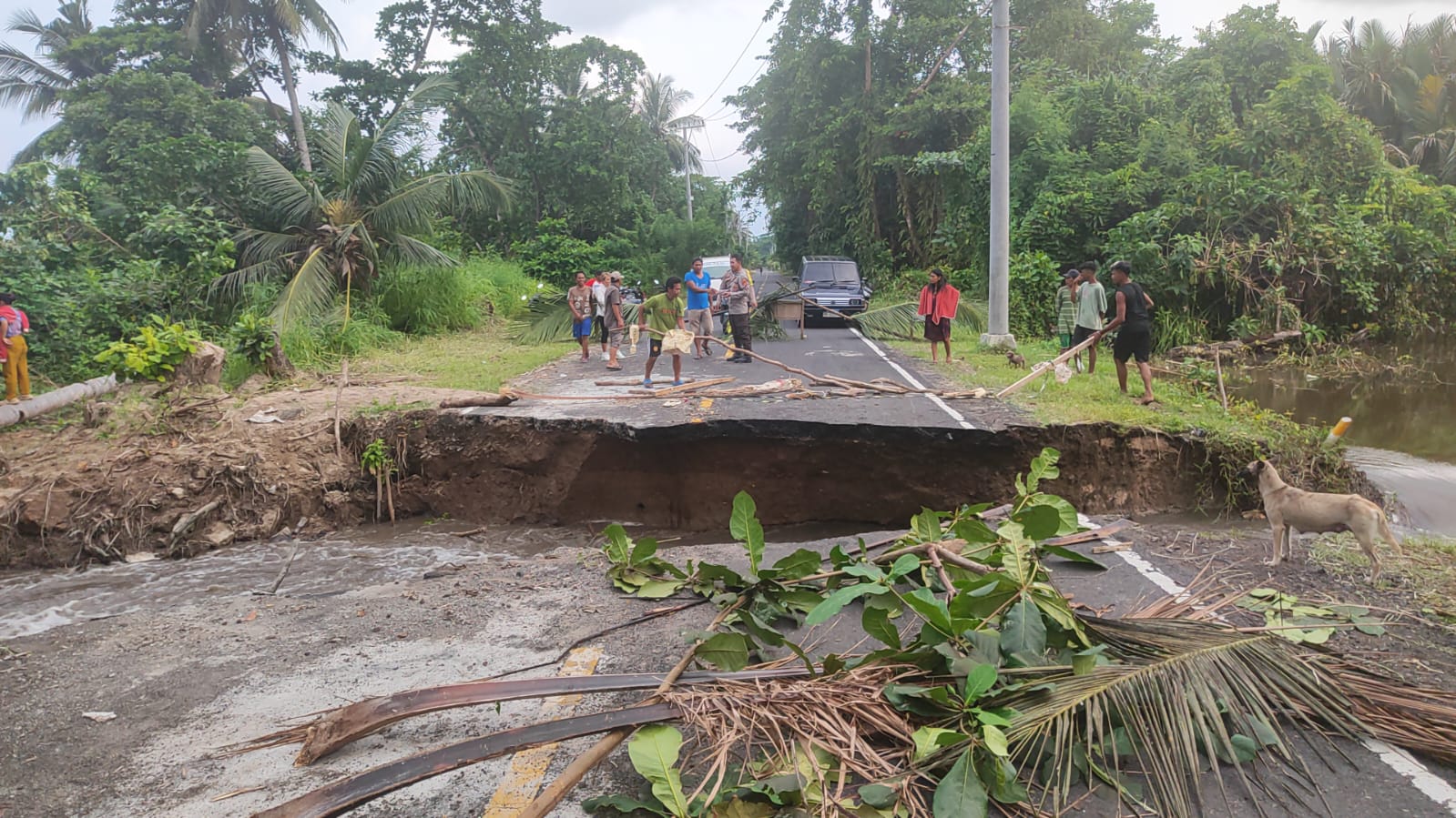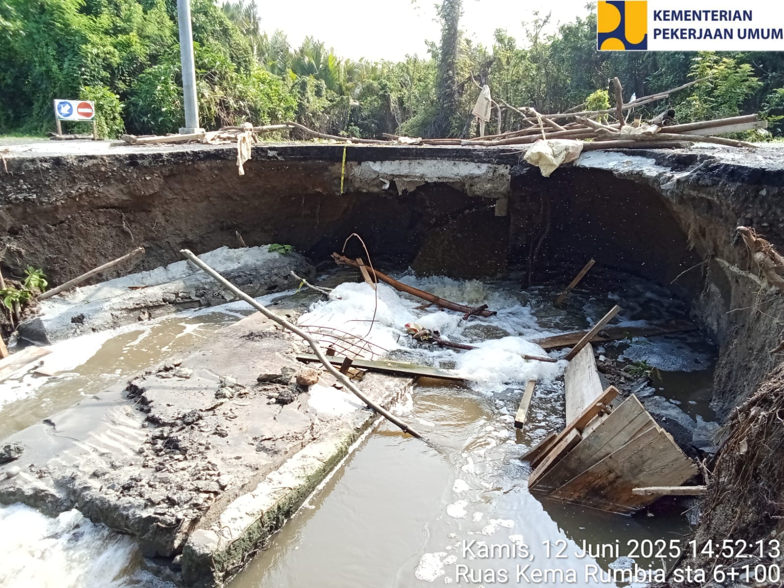 “Namun pada hari ini mulai pukul 15.00 terjadi peningkatan debit sungai dan pasang air laut yg cukup tinggi sehingga menyebabkan segmen tersebut putus sepenuhnya pada pukul 17.00. Saat ini kami mempersiapkan jembatan bailey utk dipasang pada segmen jalan yg putus tersebut sehingga ruas jalan tersebut fungsional kembali.” Tutupnya.