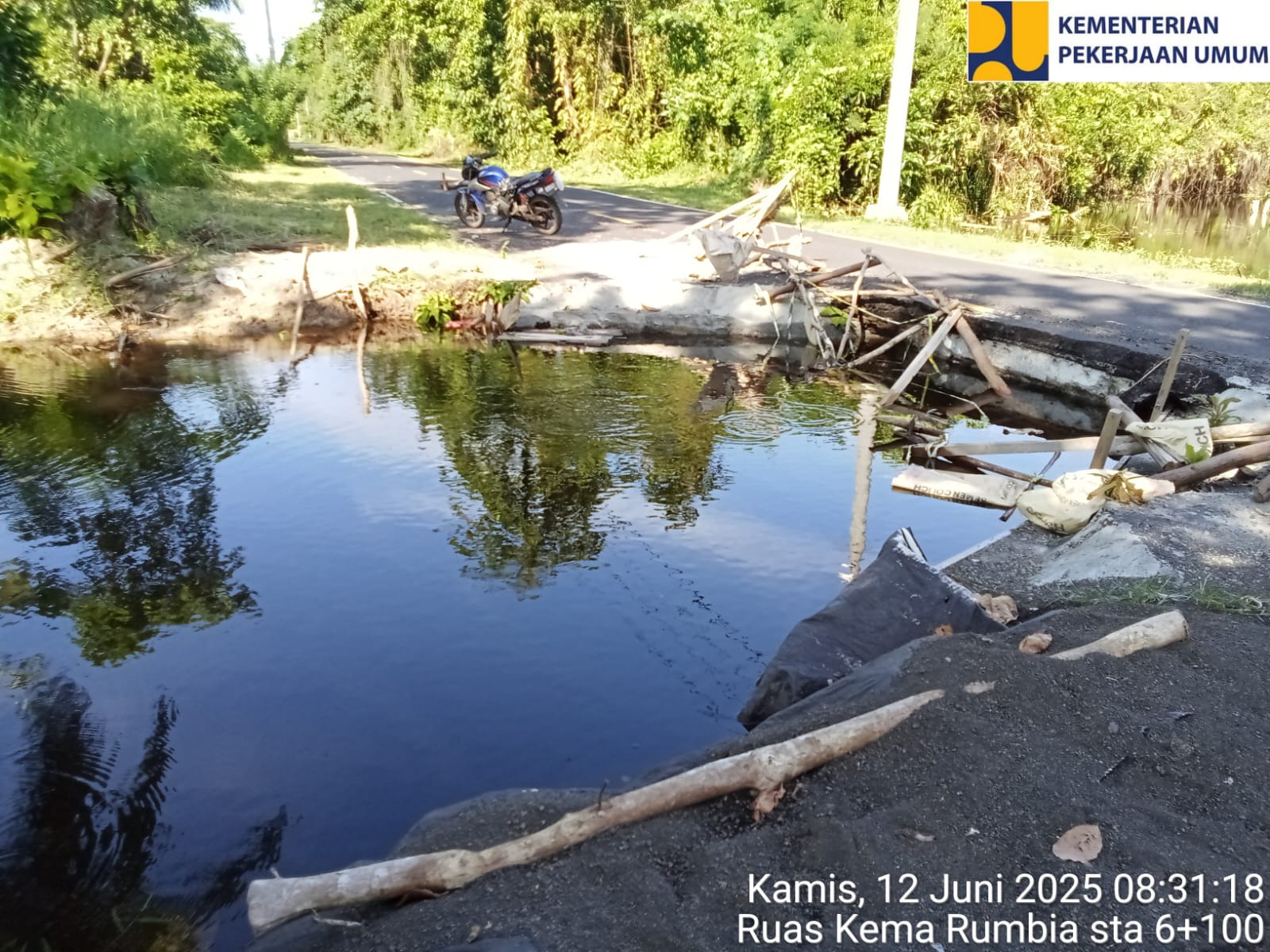 “Pada Ruas Jalan Kema – Rumbiya Km. 7 ini terdapat Cross Drain yg pada tahun ini sebelumnya rusak karena Abrasi dari laut, upaya yg sdh kami lakukan adalah melakukan proteksi sementara dan juga melakukan perencanaan beserta penganggaran utk membangun kembali Cross Drain tersebut secara permanen.” Jelas Kasatker PJN 1 Ringgo.