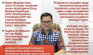 Infoterkininews.com, Minut — Bupati Minahasa Utara (Minut), Joune Ganda SE MAP MM MSi, Selasa (14/04/25) mengikuti pertemuan online (virtual) entry meeting pemeriksaan Laporan Keuangan Pemerintah Daerah (LKPD), termasuk Laporan Keuangan Kementerian/Lembaga (LKKL) TA 2024.