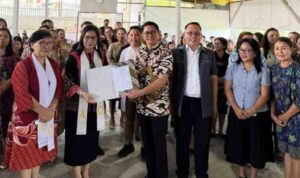 Infoterkininews.com, Minut — Bupati Minahasa Utara, Joune Ganda, menghadiri ibadah Minggu sekaligus pelantikan Panitia Perkemahan CERIA Guru Sekolah Minggu KPA Sinode GMIM Tahun 2025 di Jemaat GMIM Rakek Eden Watudambo, Wilayah Minawerot, Minggu (15/06/2025).