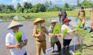 Bupati Joune Ganda Lakukan Penanaman Bibit Padi di Desa Kema 1