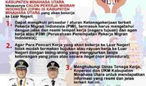 Calon pekerja disarankan untuk menghubungi Dinas Tenaga Kerja, Koperasi, dan UKM Kabupaten Minahasa Utara untuk mendapatkan informasi resmi dan pendampingan dalam proses keberangkatan.