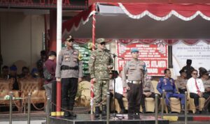 Gelar pasukan, Bupati Joune Ganda didampingi Wakapolres Minut, Kompol Arie Prakoso SIK SH.