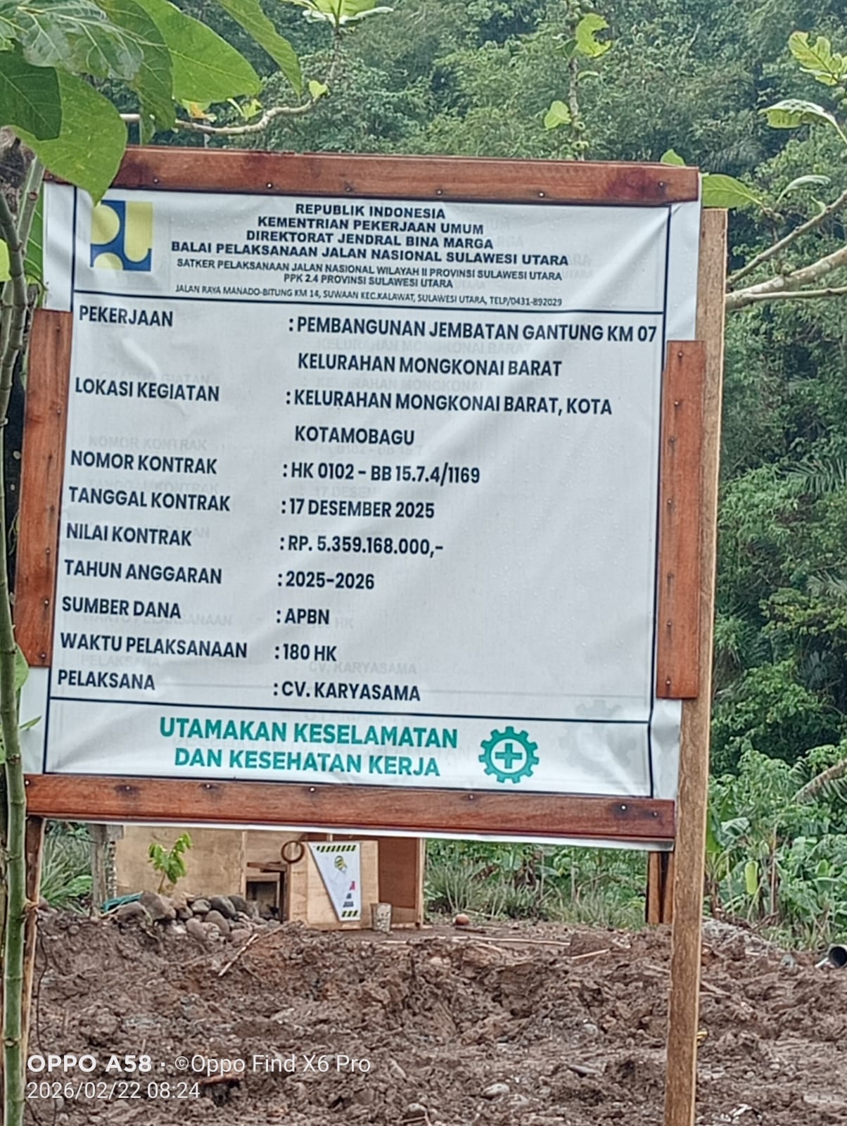 Proyek Multi years Jembatan Layang yang dibangun di Kelurahan Mongkonai Barat, Kota Kotamobagu senilai Rp5,3 M tersebut bersumber dari Anggaran Pendapatan dan Belanja Negara (APBN) melalui Kementerian PUPR, Direktorat Jenderal Bina Marga, BPJN Sulut, Wilayah II PPK 2.4.