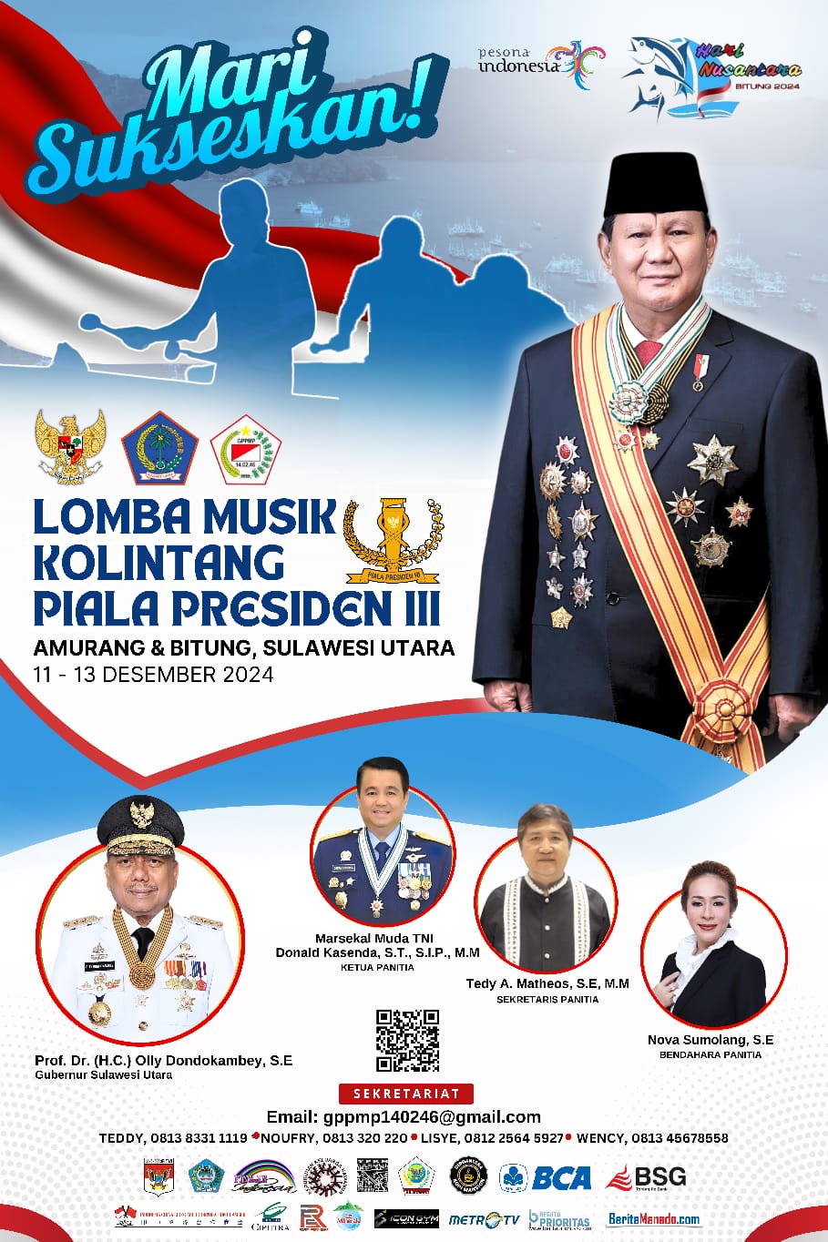 ”Terdapat 43 peserta dari Sulawesi Utara dan Jakarta yang terdaftar dan siap meramaikannya. Panitia Pusat dan Panitia Lokal juga mengundang Gubernur Sulut Olly Dondokambey dan Forkopimda serta Bupati Minsel Franky Donny Wongkar, SH juga Forkopimda,” ungkapnya.